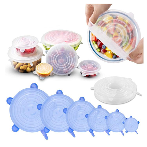 6 farklı ölçülerde silikon kapak seti çeşitli boyutlarda 6 adet şeffaf silikon kapak içerir.